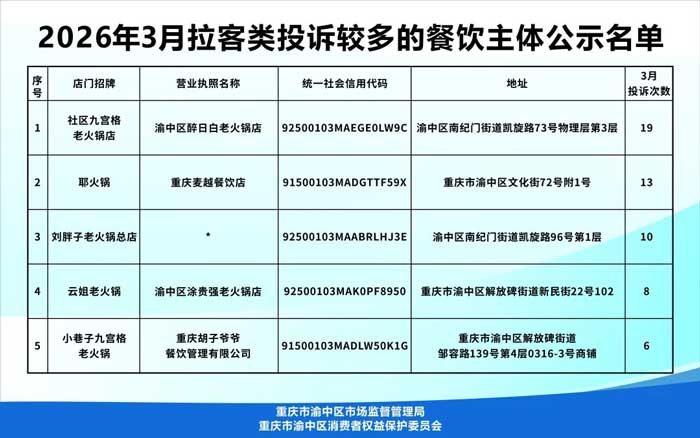 渝中区3月收到出租、网约车,“假志愿者”“假保安”等饭托拉客到餐饮主体的消费投诉118件,主要涉及以下几类集中类型。